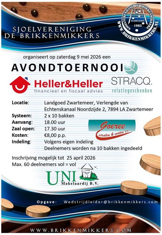 Avondtoernooi sjoelvereniging de brikkenmikkers op 9 mei 2026